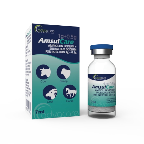 Ampicillin Sodium + Sulbactam Sodium for Injection is an antibiotic used to treat various types of bacterial infections in horses, livestock and companion animals. This medicine can be used as a parenteral alternative to amoxicillin + clavulanic acid or when oral treatment is not possible.