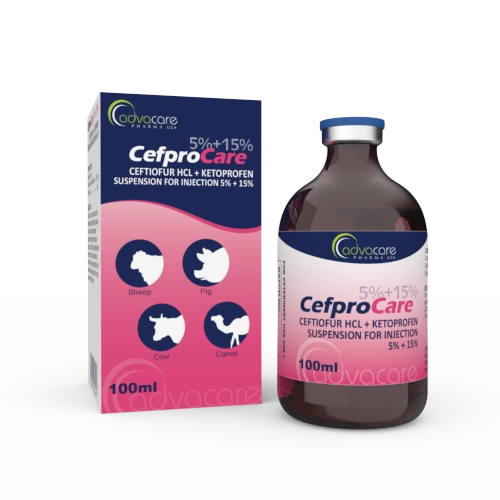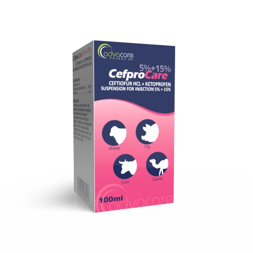 Ceftiofur HCl + Ketoprofen Suspension for Injection is a combination drug used to treat bacterial infections in dogs and livestock like camels, cows, goats, sheep and pigs. It is used to treat the inflammatory symptoms associated with hyperthermia, pneumonia, shipping fever, foot rot, and endometritis.