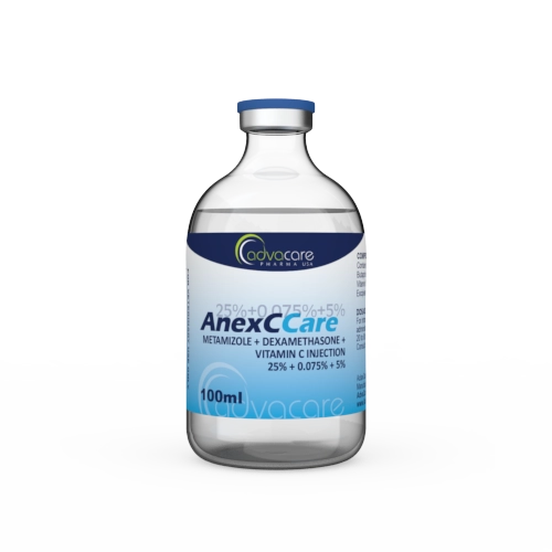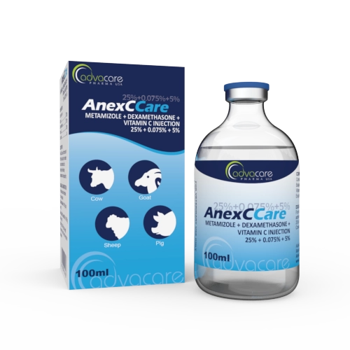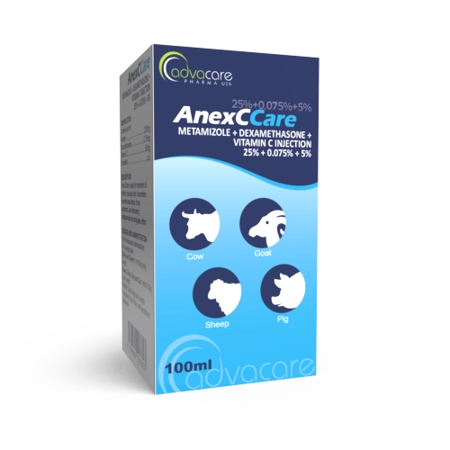 Metamizole + Dexamethasone + Vitamin C Injection is a combination anti-inflammatory used to relieve severe pain and reduce fever in many species of animals such as cows, dogs, goats, sheep, horses and pigs. It is an effective treatment for a high fever caused by infections, such as Eperythrozoon, toxoplasmosis, Circovirus, and infectious pleurisy.